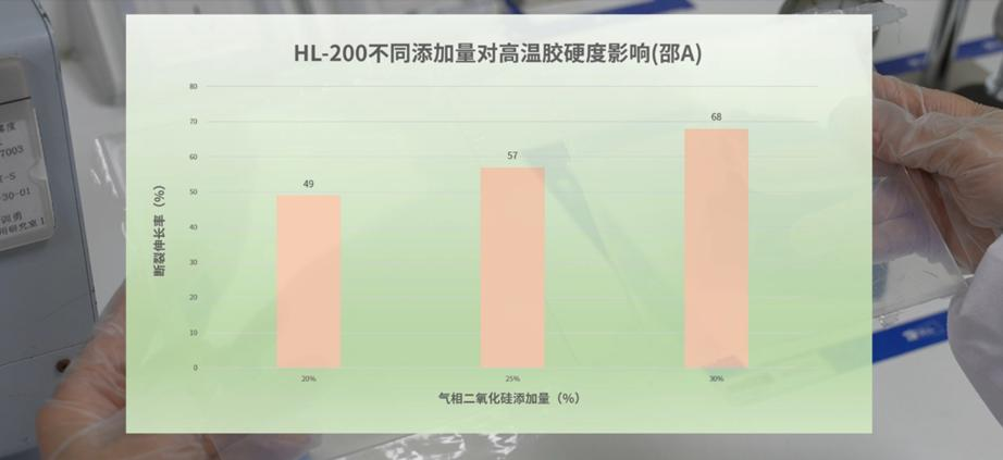 In hardness testing, the hardness values of HTV silicone rubber with 20%, 25%, and 30% hydrophilic fumed silica added were 49, 57, and 68, respectively. The 25% loading formulation demonstrated a 16% increase in hardness compared to the 20% sample, while 30% loading formulation showed a further 19% improvement over the 25% formulation, demonstrating growing enhancement with higher loading levels.