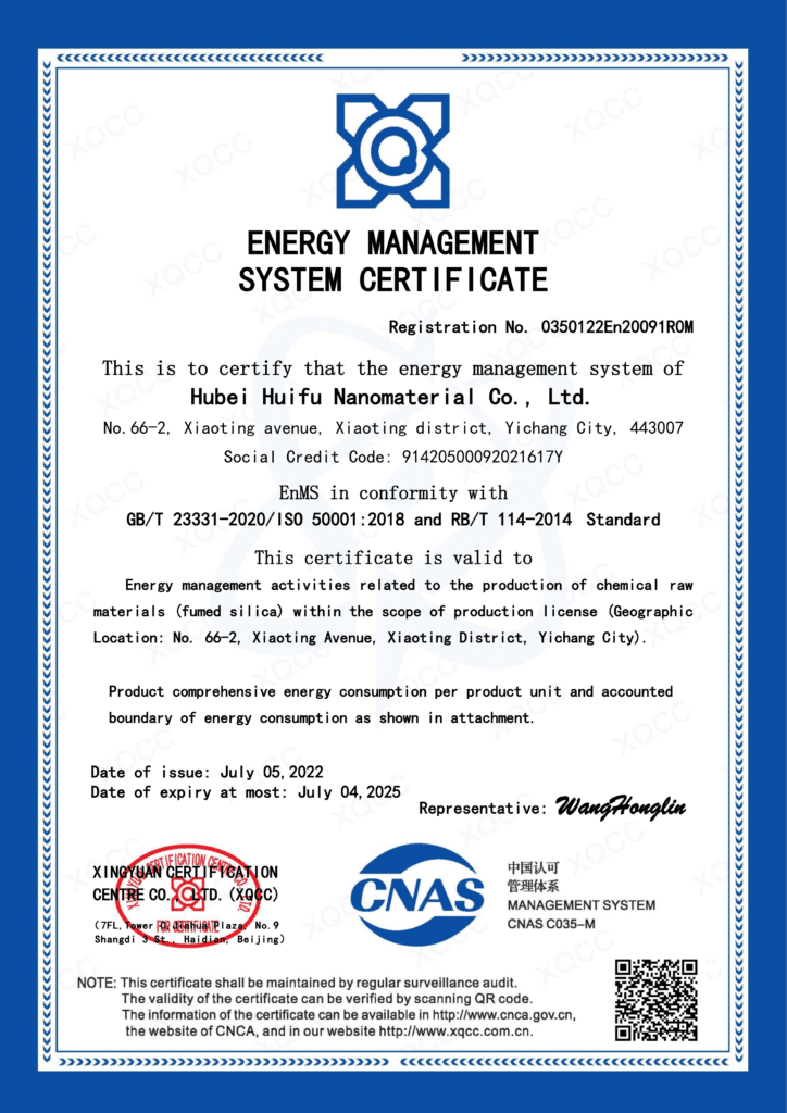 Nous fournissons au total 23 qualités de silice pyrogénée hydrophile et hydrophobe. Nous obtenons l'enregistrement de REACH et pré-enregistrement de K-REACH. Nous sommes l'organisme de réglementation leader de ISO18473-1: 2015, ISO18473-3: 2018, et ISO 23157: 2021Dans la liste, vous pouvez consulter les détails de nos certificats pertinents et nos brevets internationaux.